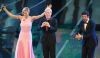 Claudio Baglioni insieme a Michelle Hunziker e Pierfrancesco Favino durante la terza serata di Sanremo 2018 (foto Ansa)