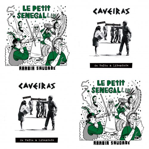 Che grande cosa gli split, un modo genuino e spontaneo, dal sapore DIY, di tracciare rotte di convergenza fra band distinte ma con una simpatia dello spirito, senza per forza addossarsi l'obbligo di scrivere e suonare musica insieme. Quale occasione più naturale per uno split, quindi, che quella di due band che dopo qualche anno scoprono di non essere le uniche ad aver scelto di percorrere un sentiero peculiare, quello di un punk che guarda al Brasile e alla sua musicalità con tutta la visceralità dei ritmi tropicali e la saudade di chi è lontano dall’oggetto perduto (o mai vissuto) del desiderio. Premesse curiosamente simili, ma resa eterogenea: i Caveiras accolgono l’anima più percussiva e tribale della musica afrotropicale, quella del samba e della batucadas; il mantra pulsante di tamburi e claves è il tappeto sonoro di qualcosa a metà fra un rito candomblé, il carnevale e un corteo di piazza (c’è poi differenza?), dove cori si alternano a sirene e frasi vibranti che sembrano uscire da un megafono. Del resto, a dare nome a due dei tre brani di ‘De Volta à Liberdade’ sono due canzoni di Caetano Veloso e Gilberto Gil, cantori del tropicalismo brasiliano e della sua anima più revolucionária e anticonformista (e musicalmente visionaria). Meno viscerali e più scanzonati, a partire dal gioco di parole con cui si sono battezzati, gli Arabia Saudade; la loro musica, come la presentano efficacemente da soli, ha “l’attitudine ritmica dei Minutemen” e si nutre di idealizzazioni e “appropriazioni culturali random”.Ovviamente ‘appropriazione culturale’ non è davvero il termine adatto, ma nella cornice autoironica con cui il gruppo si presenta sta a significare che il loro Brasile è quello visto con gli occhi di uno straniero e la voglia di scatenarsi, finché dura, nel carnevale. La loro via al punk brasileiro è energica e fracassone, ricorda a tratti la prima patchanka dei Mano Negra con una forte dose di tropicalismo in più. Due band, due anime diverse per uno interessante split con due facce, ma lo stesso cuore ancorato al Tropico del Capricorno.