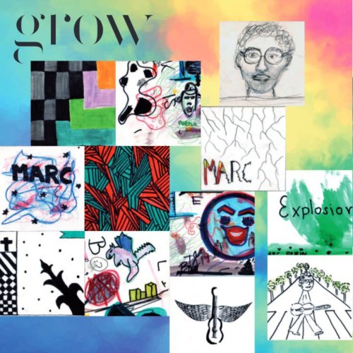 La copertina di Grow, è un collage di disegni dei suoi alunni delle medie di Innsbruck, che hanno voluto ricordare così il loro insegnante di ritorno in Italia, dopo nove anni all’estero.